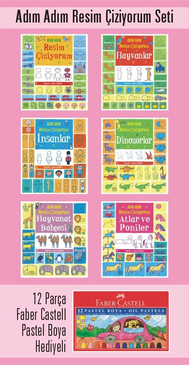 Kitapbulan özel Adım Adım Resim Çiziyorum Set'inde Serinin 6 Kitabı Birden Sizlerle. Üstelik 12 Parça Faber Castell Pastel Boya Hediyeli