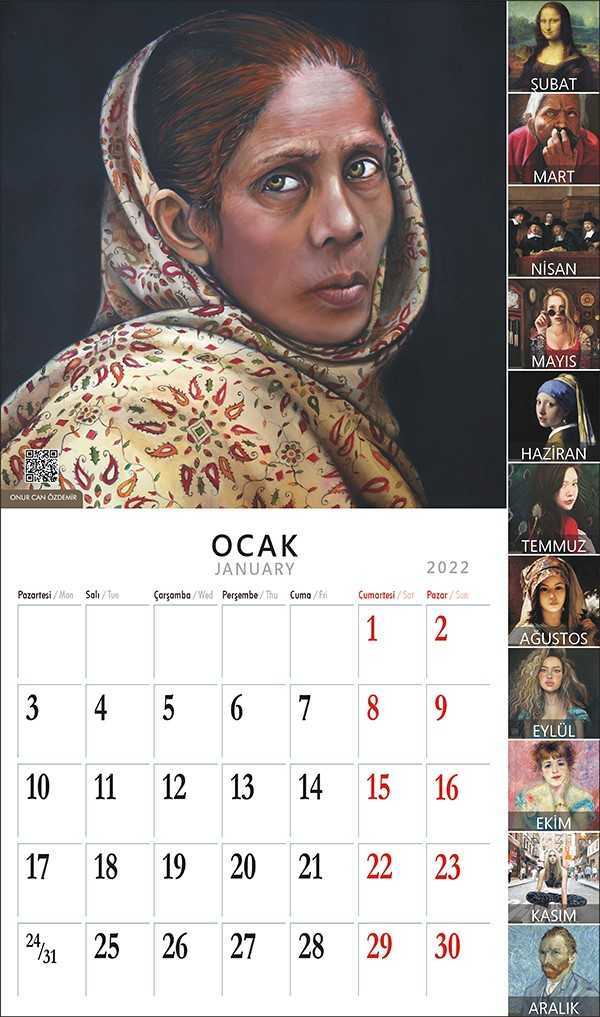 2022 sanat takvimlerimizi sunuyoruz. Bu takvimimizde dünya klasikleri yanında ressamımız Onur Can Özdemir?in yağlıboya tablolarını da bulacaksınız. Onur Can Özdemir resimlerinin sol alt köşesinde kare kod la tabloların yapılışını izleme olanağınız olabilecektir. Tablolar hiçbir kopyalama tekniğinden yararlanmadan katmanlı boyama ile yaratılmıştır. Takei Presents de bir tablo yaratma videomuz 14 Milyon kez izlenmiş ve 25.000 paylaşım ve 10000 civarı yorum almıştı. New York?ta da Art New York?ta da sergilenmişti ve büyük ilgi görmüştü.